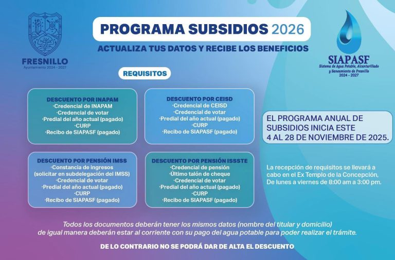 El Sistema de Agua Potable, Alcantarillado y Saneamiento de Fresnillo (SIAPASF) invita a la ciudadanía a participar en el Programa