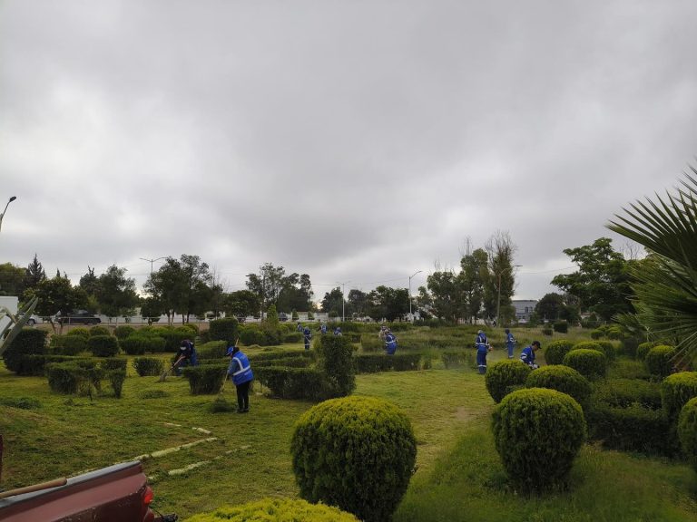 La Dirección de Parques y Jardines realizó labores de poda y desmalezado en el área del Monumento a la Bandera,