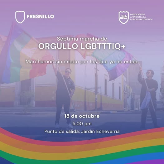La Séptima Marcha del Orgullo LGBTTTIQ+ llega a Fresnillo como un poderoso acto de visibilidad, memoria y lucha por la