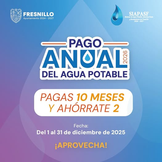 El Sistema de Agua Potable invita a todas y todos los usuarios a utilizar el Pago Anual 2026, un programa