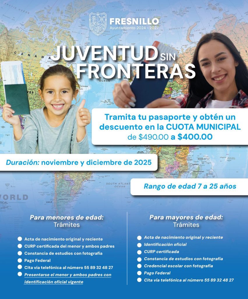 El Instituto de la Juventud, en colaboración con Relaciones Exteriores y SIPINNA, lanza el programa «Juventud Sin Fronteras», con el objetivo de facilitar el trámite de pasaporte a jóvenes fresnillenses.