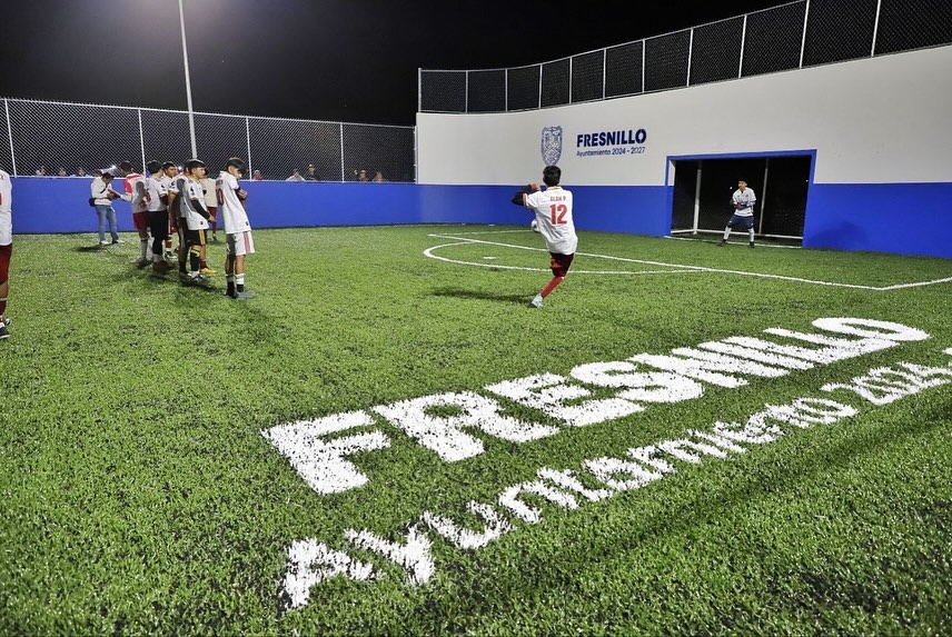 La cancha de pasto sintético fue entregada a la comunidad completamente equipada e iluminada, lista para ser punto de encuentro y orgullo de Rancho Grande.