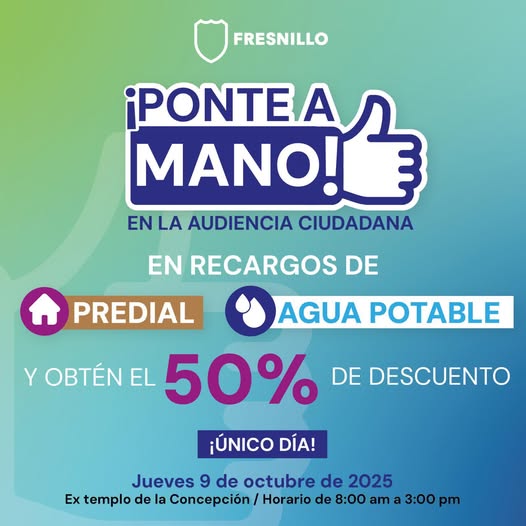 Acude a la Audiencia Ciudadana y aprovecha un 50% de descuento en recargos de: